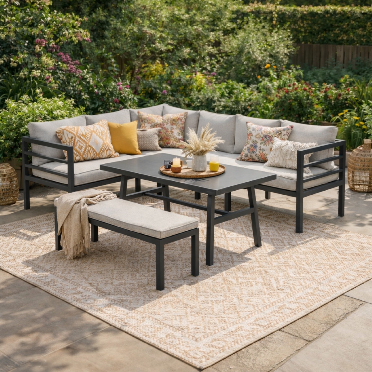De Bleco II lounge-diningset biedt ruimte, stijl en gebruiksgemak – alles wat je nodig hebt voor ontspannen buitenleven.