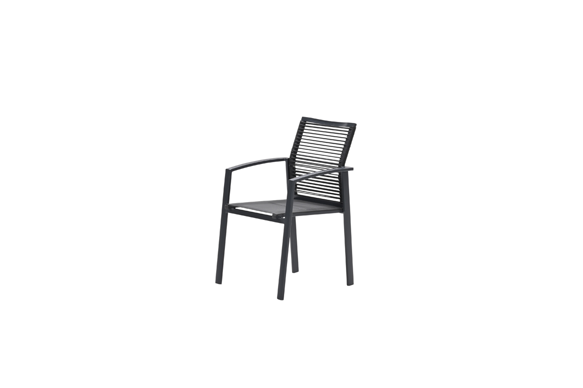 De Cosmo stoelen sluiten daar naadloos op aan. De combinatie van een stevig aluminium frame, een comfortabele textileen zitting en een rugleuning van handgeweven rope zorgt voor een prettige zit en een moderne uitstraling. De materialen zijn bestand tegen verschillende weersinvloeden en drogen snel na een regenbui, waardoor je er weinig omkijken naar hebt.