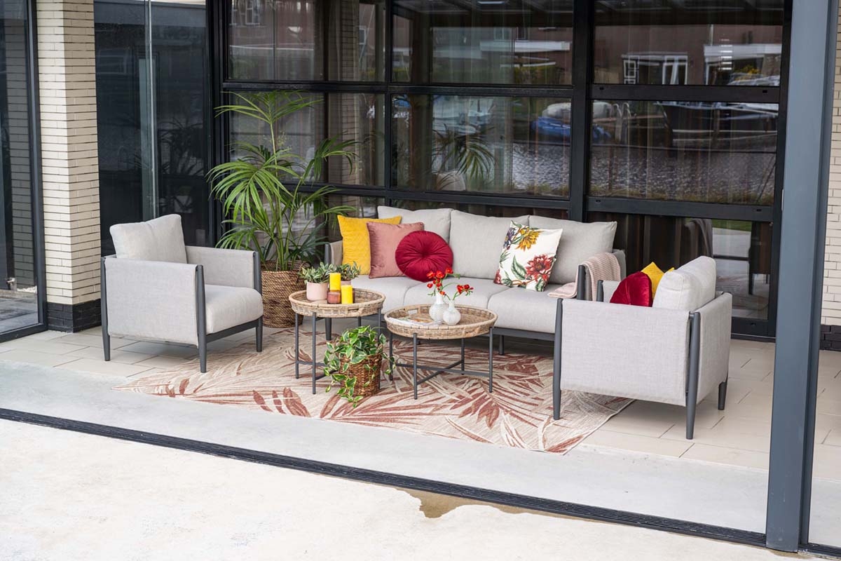 De Benidorm bijzettafels hebben een aluminium frame met een beschermende poedercoating. De mand is gemaakt van handgevlochten, kunststof vlechtdraad.