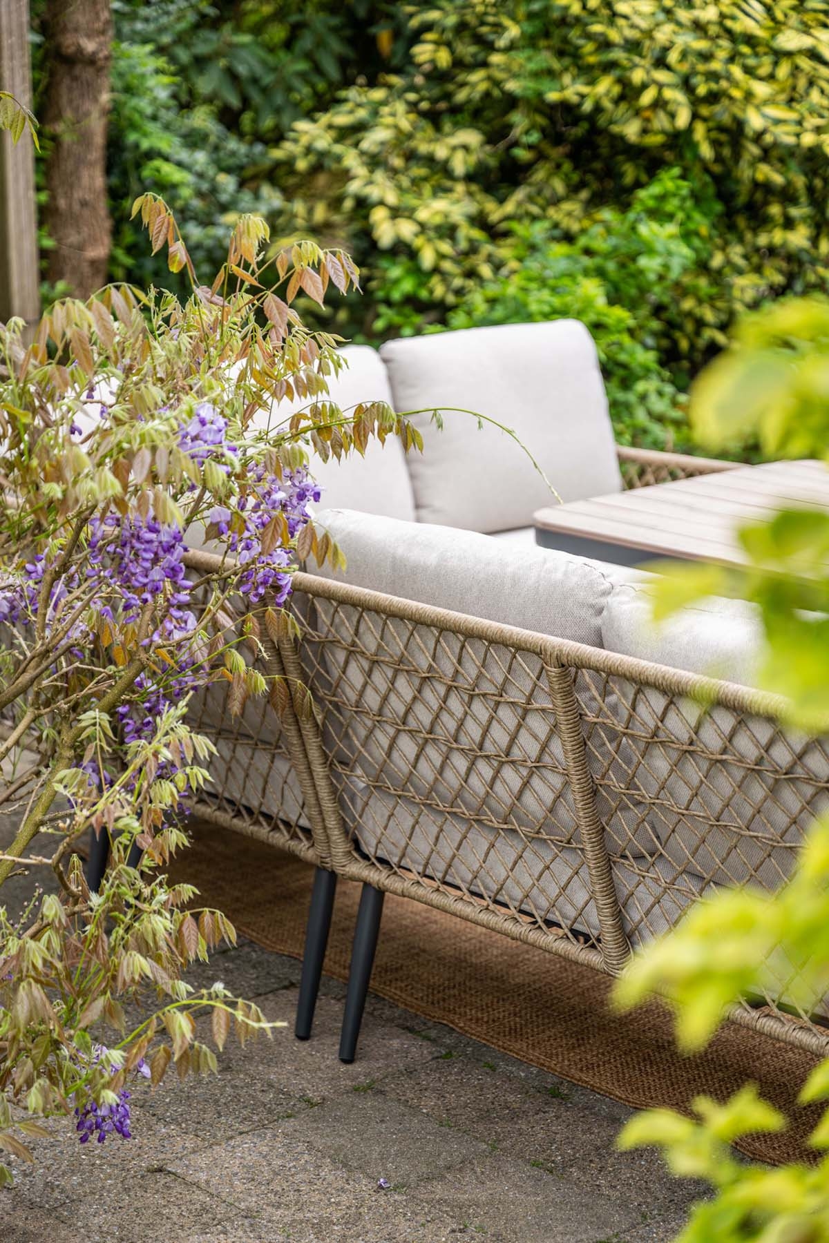 De lichte kleurstelling van de Allasio lounge-diningset zorgt voor een ruimtelijk gevoel in je tuin. Dit is niet zonder reden, want de ruime hoekbank biedt plaats aan maar liefst zeven personen!
